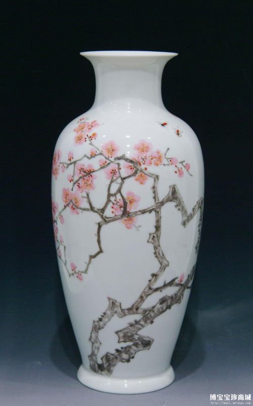 瓷藝作為中華傳統(tǒng)藝術的瑰寶不僅外觀上極具東方典雅氣質,內涵上更是飽含著深切的祝愿。我們在欣賞一款瓷器精品時不僅被它優(yōu)雅的外觀所吸引,驚嘆于瓷藝大師精湛的技藝更是為其中的美好寓意所感染。這一款收藏于博寶寶珍商城的《梅開五!芬灾袊鴤鹘y(tǒng)的梅花為演繹對象。整個瓶飾圓潤通透,輪廓大方。梅花的點綴構成了畫面的生機之感,仿佛嗅到春的氣息,感受到一種生命力的旺盛。劉平在表達這一主題時,緊扣粉彩的自身演繹之法,以溫潤的色彩表達主題,刻畫細致入微,線條柔美賦予變化。在完美呈現(xiàn)粉彩的多姿魅力的同時,更是將富貴安康的美好寓意表達。是收藏精品更是饋贈的好禮。