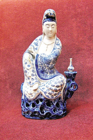 另外,福建會(huì)館款青花觀音坐像和雍正款天青釉蓮蓬口瓶,也被沙龍推為民國精品瓷。