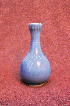 在眾多的藏品中,一件“乾隆款冬青釉暗花夔龍紋搖鈴尊”最為引人矚目,這件搖鈴尊造型優(yōu)雅,通身施冬青釉,色澤溫潤,如玉一般,主題圖案為暗花夔龍,圈足內(nèi)書六字青花篆款“大清乾隆年制”。朱軍指出,這是一件民國時(shí)期產(chǎn)的瓷器,款是寄托款,單色釉燒成率極低,這件搖鈴尊可謂精品中的精品。
