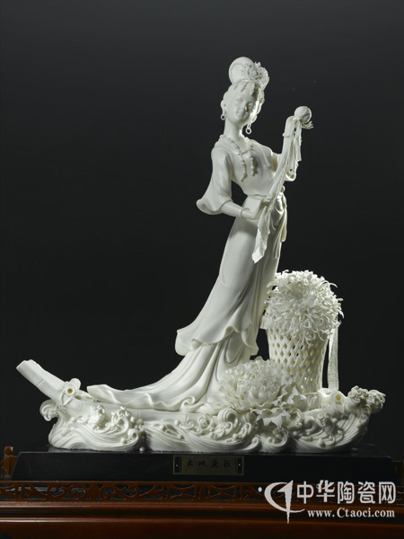 瓷塑《大地飛歌》被指定為2008年中國(guó)—東盟博覽會(huì)國(guó)禮,并載入東盟史冊(cè),其作品靈感源自廣西“歌仙”劉三姐,她是智慧與才華、愛(ài)與美的象征,將廣西文化和德化的瓷器文化完美地融合在一起,悠悠漓江水載著美麗的劉三姐和綻放的菊花與牡丹花,把劉三姐塑造得清秀俊逸、超凡脫俗。