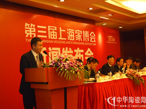 2010年12月7日,“第三屆上海家博會(huì)”新聞發(fā)布會(huì)在光大國際大酒店隆重舉行,上海商務(wù)委貿(mào)促處處長蔣雪根、上海裝飾裝修行業(yè)協(xié)會(huì)常務(wù)副秘書長郟祥均、上海家博會(huì)組委會(huì)主任茅萬青、上海市裝飾裝修行業(yè)協(xié)會(huì)材料委員會(huì)秘書長應(yīng)再揚(yáng)、家博會(huì)承辦單位上海華墨展覽服務(wù)有限公司總經(jīng)理王國平等出席了新聞發(fā)布會(huì)。另有來自上海市前30強(qiáng)知名家裝公司、200多家品牌建材家居企業(yè)、數(shù)十家行業(yè)權(quán)威媒體的300多名代表參加了新聞發(fā)布會(huì)。