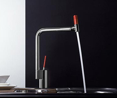 在噴頭上增加了紅色的元素,讓這款龍頭看上去更加時(shí)尚。為這款簡(jiǎn)約設(shè)計(jì)的龍頭添加了美觀的效果,成為廚房的點(diǎn)睛之筆。