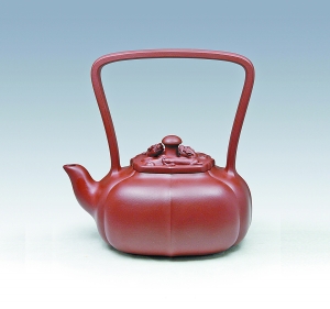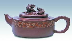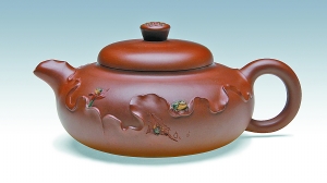 他的紫砂作品有多種類(lèi)型。他既能夠設(shè)計(jì)制作簡(jiǎn)潔概括的幾何形體類(lèi)的“光貨”,充分顯示著挺秀、嚴(yán)整和自然天成的生命力,給人以飽滿(mǎn)和充實(shí)的印象。他更擅長(zhǎng)設(shè)計(jì)制作象形取意的自然形態(tài)的“花貨”,而這種類(lèi)型的作品,也多是以“光貨”作為造型主體的基本型,再加以選擇人物、動(dòng)物或植物等不同題材的紋樣作為裝飾,構(gòu)成了豐富多樣與和諧統(tǒng)一的整體效果。他在制作“花貨”的裝飾和構(gòu)件的塑造能力,可以和象牙雕刻、石印治鈕以及琢玉鏨銅的工藝美術(shù)家比肩。他所掌握的技藝是比較全面的,他既掌握了“光貨”器物造型特點(diǎn)和工藝制作的技術(shù)范式,同時(shí)又練就了一手精到的塑造自然形態(tài)的本領(lǐng)。多種自然物象經(jīng)他的“慘淡”經(jīng)營(yíng),巧思精制,表現(xiàn)出細(xì)致入微和生動(dòng)自然的意趣。應(yīng)該說(shuō)他諳熟“光貨”和“花貨”兩種不同類(lèi)型的紫砂工藝技術(shù)和藝術(shù)特點(diǎn),并且在二者之間拓展出一片園地,創(chuàng)造了個(gè)人作品的風(fēng)格特點(diǎn),并且獲得了豐收。