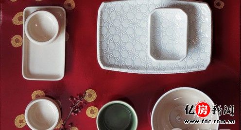 成組的中式的陶瓷餐具更符合現(xiàn)代人的使用習(xí)慣。散落的碎花點綴在紅色的漆盤中,東方韻味躍然于餐桌上。