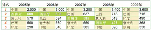表一:世界陶瓷生產(chǎn)大國產(chǎn)量前5名排行榜(2005年-2009年)