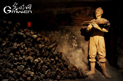 圖為龍泉青瓷博物館里展示古代青瓷工匠燒制青瓷前的場景。記者 楊慧峰攝
