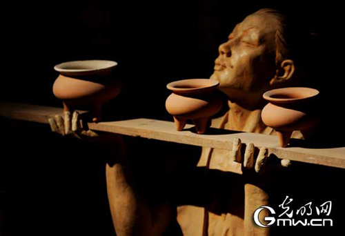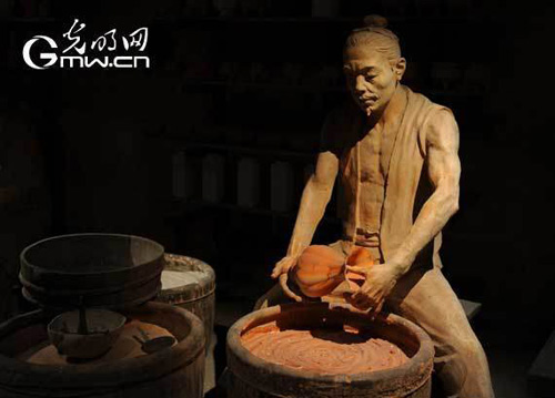 圖為龍泉青瓷博物館里展示古代專門燒窯的青瓷工匠。記者 楊慧峰攝