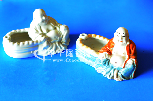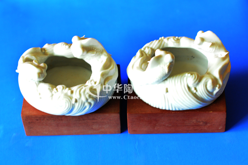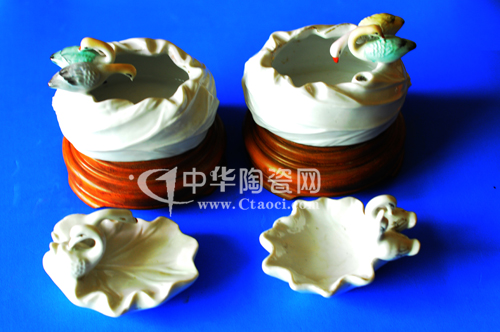 德化瓷器以如脂似玉的質感和栩栩如生的雕塑藝術名揚四海,獨步世界瓷林。當然,作為家居客廳的案桌或茶幾上幾乎必備的陶瓷煙灰缸,自然也彰顯著德化瓷那特殊的藝術語言。自從清末以來,我國市民抽煙群體越來越龐大,煙灰缸便取代了鼻煙壺,不但大量生產,而且像鼻煙壺一樣,瓷藝師千方百計、匠心獨具、巧妙構思、精雕細刻,賦以生動活潑的藝術生命。童老師說:“特別是德化瓷雕煙灰缸,各種典雅瓷質的玉‘白’和多姿多彩的藝‘雕’,都得到充分的發(fā)揮,可以說,近現(xiàn)代德化瓷藝的發(fā)展與成就,從這些瓷雕煙灰缸系列中,都可窺視到她的身影。”