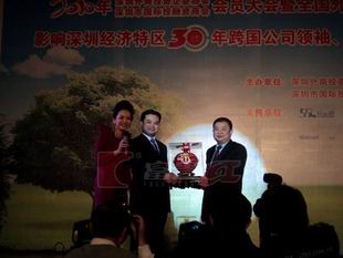 12月10日,由深圳市外商投資企業(yè)協(xié)會(huì)、深圳市國(guó)際投融商會(huì)主辦的“影響深圳經(jīng)濟(jì)特區(qū)30年跨國(guó)公司領(lǐng)袖、港商領(lǐng)袖頒獎(jiǎng)典禮”在深圳市五洲賓館隆重舉行。深圳市政府有關(guān)負(fù)責(zé)人、港澳與外國(guó)友好商會(huì)代表及境外工商界知名人士1000余人出席頒獎(jiǎng)典禮。典禮晚會(huì)上,來自中國(guó)瓷都·德化福建省富貴紅文化發(fā)展有限公司的陶瓷藝術(shù)品《碩果》(龍騰神州·漆線雕)成為現(xiàn)場(chǎng)佳賓特等獎(jiǎng)禮品。深圳富貴紅藝術(shù)品發(fā)展有限公司巫楊金總經(jīng)理應(yīng)邀出席。