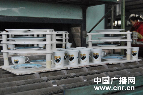 1月7日下午,記者在三環(huán)生產(chǎn)車間看到,第一批貼有威廉王子和女友凱特-米德爾頓合影照的陶瓷杯、陶瓷盤燒制出爐,色澤靚麗、釉面柔雅,給人以優(yōu)美清新、尊貴典雅之覺。按照計(jì)劃,三環(huán)將從1月10日起正式生產(chǎn)英國王室的訂單。