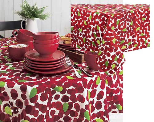 搭配點評:寒冷的冬天給餐桌也穿上衣服吧,溫暖鮮艷的顏色是最好的選擇。紅色還可以增進食欲的功效。