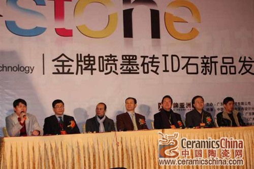 2011年1月12日,廣東金牌陶瓷有限公司在廣州碧桂園鳳凰城酒店舉行金牌噴墨磚ID石新品“ID—STONE”發(fā)布會(huì)暨2011經(jīng)銷商年會(huì)。中國(guó)建筑衛(wèi)生陶瓷協(xié)會(huì)會(huì)長(zhǎng)葉向陽(yáng)、中國(guó)建筑學(xué)會(huì)室內(nèi)設(shè)計(jì)分會(huì)副會(huì)長(zhǎng)勞智權(quán)、西班牙原創(chuàng)噴墨設(shè)計(jì)師Danel等嘉賓,與廣東金牌陶瓷有限公司生產(chǎn)總經(jīng)理梁志啟、營(yíng)銷總監(jiān)冼潤(rùn)林,金牌亞洲陶瓷營(yíng)銷總經(jīng)理羅良照,和來(lái)自全國(guó)各地的300多位經(jīng)銷商共聚一堂,一起見(jiàn)證具有革命性創(chuàng)新和前瞻性環(huán)保理念的“ID—STONE”新品的閃耀面世。
