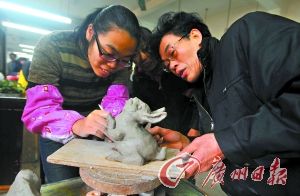 可愛活潑的兔寶寶、表情夸張的卡通兔、年味十足的迎春兔。昨日的佛山新石灣美陶廠儼然成了兔子的樂園,劉澤棉、霍家榮等大師級陶藝家創(chuàng)作的100余款兔年生肖陶瓷在此展出。到此參觀的市民,除了欣賞大師作品之外,還能動手制作屬于自己的紀念陶瓷品。20位屬兔的幸運市民也來到工作間,在陶藝大師的指導(dǎo)下,動手創(chuàng)作屬于自己的個性化石灣兔公仔。