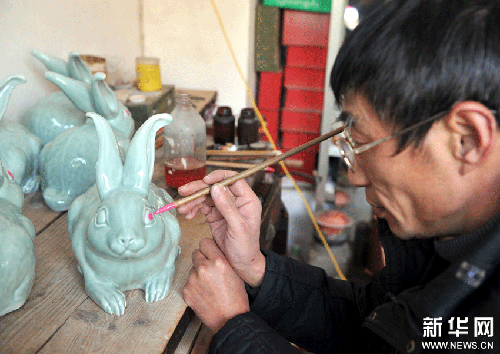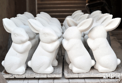 中國農(nóng)歷兔年將至,瓷都景德鎮(zhèn)的陶瓷藝術(shù)工作者們?yōu)橥媚曛谱髁硕喾N多樣的兔形雕塑,為農(nóng)歷兔年?duì)I造了濃濃的新意。