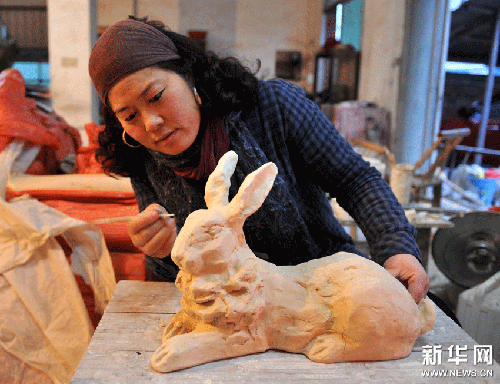 (1)1月16日,陶瓷雕塑家趙坤在制作兔子雕塑。