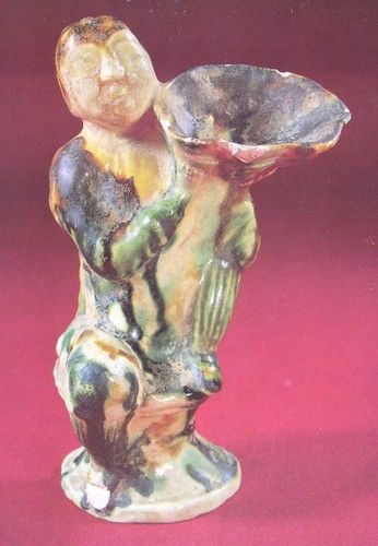 洛陽呂廟出土唐三彩人形壺。