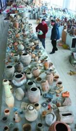 丁福仁對陶瓷藝術(shù)的迷戀真可謂是如癡如醉,走進他的陶瓷藝術(shù)品的收藏倉庫,真是琳瑯滿目,目不暇接,近千平方米的倉庫已經(jīng)無法全部展示他收藏的陶瓷藝術(shù)品,數(shù)十米的長桌陳列著不同形狀的古陶瓷,有五千年前新石器時期的馬家窯雙耳彩陶、西漢的灰陶、東漢博山爐、土灶、清朝康熙虎皮漿糊桶等。也有匯集景德鎮(zhèn)近代著名老藝術(shù)家創(chuàng)作的珍品以及現(xiàn)代藝術(shù)大師創(chuàng)作的陶瓷藝術(shù)精品。