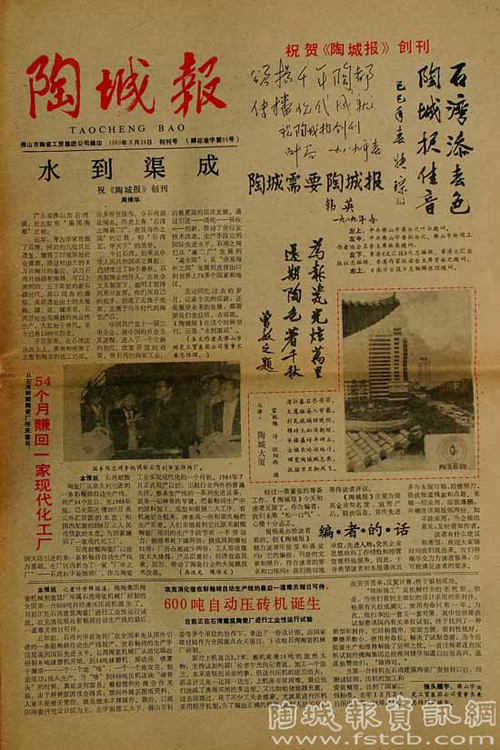 1989年3月28日,首家陶瓷行業(yè)媒體陶城報正式創(chuàng)刊。