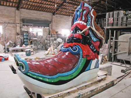 “絲綢之路起點”,已在廣州佛山燒制成功,將于近日運抵世園會園區(qū)進(jìn)行安裝。圖為巨腿一只腳上的“虎頭鞋”。世園會籌備辦供圖