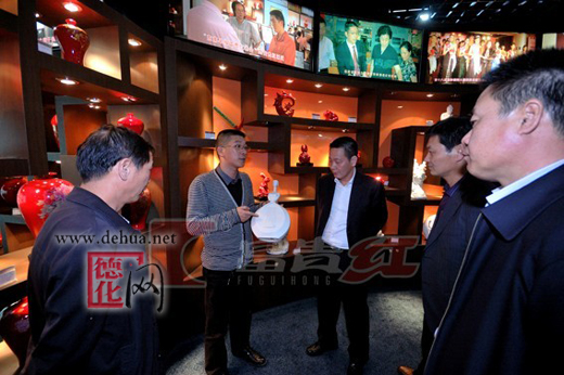 2月27日,天津市東麗區(qū)人民政府副區(qū)長(zhǎng)軋乃利,天津市福建商會(huì)會(huì)長(zhǎng)阮志雄一行8人在德化縣政府領(lǐng)導(dǎo)黃耀昆、黃發(fā)建的陪同下蒞臨福建省富貴紅文化發(fā)展有限公司參觀(guān)考察。