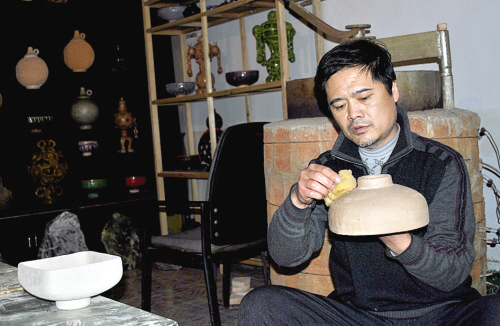 如今,沉寂十余年的海城陶瓷工藝被列為市級非物質(zhì)文化遺產(chǎn),與一個名叫韓宇的人不無關(guān)系,他是該工藝的唯一代表性傳承人。記者見到韓宇時,他還在那個不足20平方米的小屋里研制陶器:一個靠在墻面上的陳列柜,一張床,一個窯,一地未完成的陶藝胚。這些年,韓宇就是這樣堅持研究發(fā)展海城陶瓷工藝的。韓宇的父親曾是海城陶瓷四廠的技術(shù)科科長兼美術(shù)師,他從小就對陶瓷有著莫名的親切感。1980年,18歲的韓宇也進了陶瓷廠,憑著天分,韓宇在產(chǎn)品設計車間里一干就是17年,直到1997年下崗。之后兩年多的時間里,韓宇換了好多工作,可始終對制陶不死心。韓宇偶然在電視上看到一個叫邢良坤的大連人,雖然是鉗工出身,但竟然在陶瓷工藝上獲得二十幾項國際發(fā)明專利,一百多個國家的博物館收藏其作品,而且邢良坤“撂下狠話”:誰能搞出我這東西,我的家產(chǎn)全都給他!這個在韓宇眼中“挺傲”的人形容自己的作品“前無古人,后無來者”,這激起了韓宇的覺醒,“一個門外漢都成為了行業(yè)內(nèi)的大師,我怎能輕易放棄!”