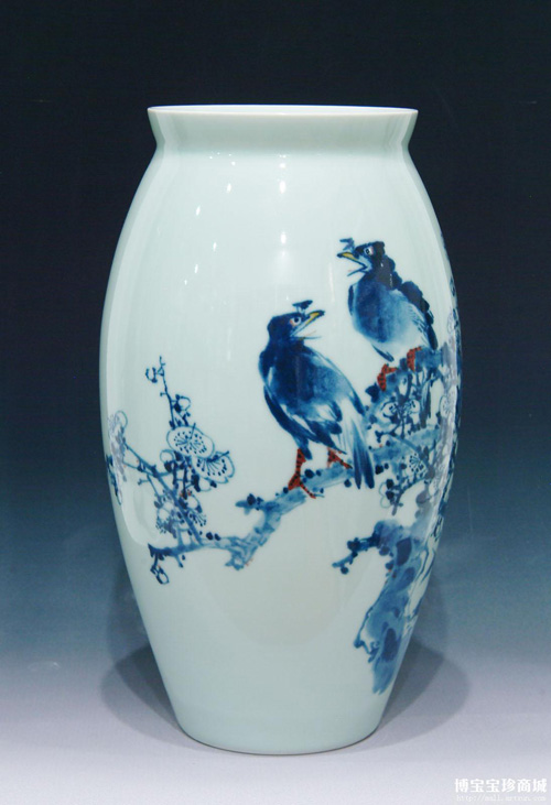 陸如出生于陶瓷名門世家,從小受到瓷文化的熏陶,現(xiàn)為我國陶瓷藝術大師,很多經(jīng)典的傳世陶瓷藝術品都是出自他手中的,他在繼承我國傳統(tǒng)制瓷工藝的基礎上,不斷專研和改革,將中國傳統(tǒng)的民俗文化精髓融入其中。寶珍商城收藏的這款青花瓶就是出自他手中的精品。如玉石般高潔素雅的釉面上以湛藍色描繪著一幅春歌圖,兩個小鳥立于枝頭歡快地鳴叫著一派欣欣向榮的新氣象,不僅造型別致,而且寓意美好,使得這款瓷器更加的傳神和經(jīng)典。這樣的瓷器一定會受到廣大朋友的喜愛和追捧。
