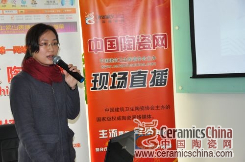 ICC陶瓷市場部經(jīng)理吳凱怡女士正在對ICC半年的發(fā)展情況進行簡單闡述