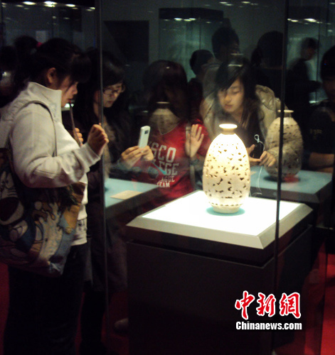 圖為市民在觀看展出的古陶瓷精品。張茜翼 攝