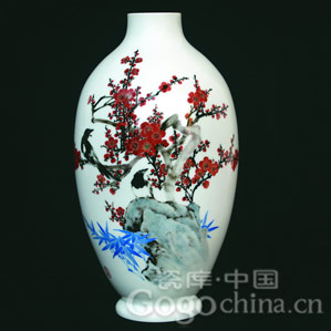 陶瓷藝術(shù)·丁華漢大師手繪梅開五;ㄆ