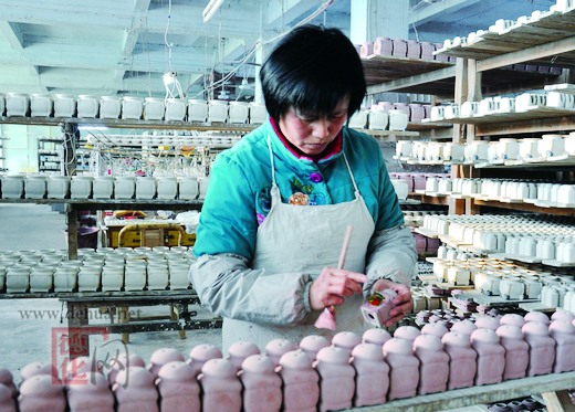 圖為永德信陶瓷有限公司工人在從事生產(chǎn)