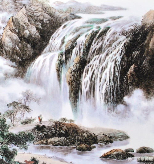 況冬茍(況堅) 山水瓷板畫《絕壑留聲》