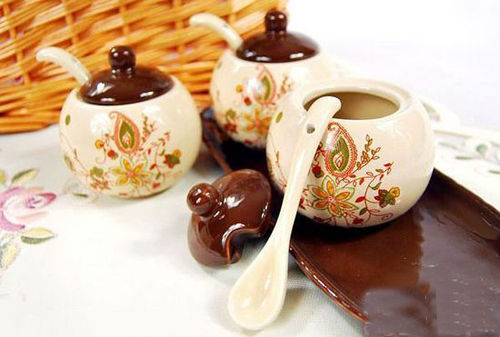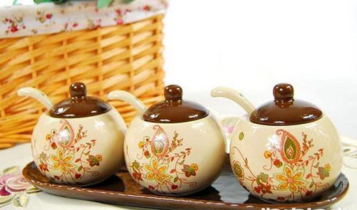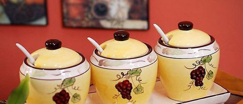 庫爾勒的葡萄園 暖黃色手繪陶瓷調(diào)味罐