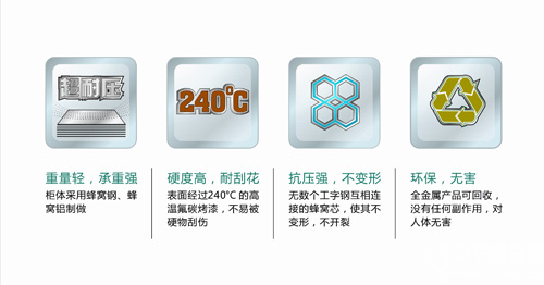 咋一看這個浴室柜好像是實(shí)木材質(zhì),其實(shí)它是金屬材料。用作航空領(lǐng)域的蜂窩鋼、蜂窩鋁打造而成,全金屬材料使整體重量減輕,而且可回收利用,更環(huán)保耐用!