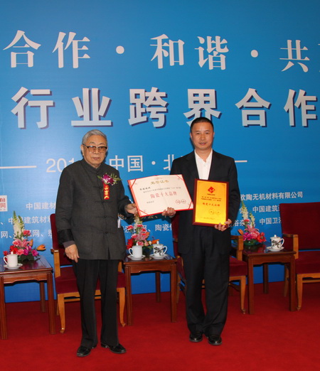 2011年4月12日,莊嚴(yán)的人民大會堂再次奏響盛世華章,由中國陶瓷網(wǎng)、中國建材家居流通指數(shù)研究中心共同主辦的主題為“跨越、合作、和諧、共贏”的中國家居行業(yè)跨界合作論壇暨中國建筑衛(wèi)生陶瓷“十大”年度排行榜頒獎盛典在這里隆重舉行。出席本次大會的有建設(shè)部原副部長周干峙、住房和城鄉(xiāng)建設(shè)部村鎮(zhèn)建設(shè)司司長李兵弟等部委和五大行業(yè)協(xié)會領(lǐng)導(dǎo)人以及來自全國各大陶瓷產(chǎn)區(qū)的知名陶瓷、衛(wèi)浴企業(yè)、經(jīng)銷商、設(shè)計師、裝飾公司、房地產(chǎn)商和知名媒體等。本次頒獎盛典,佛山依諾陶瓷有限公司作為一家倡集生產(chǎn)、設(shè)計、品牌、銷售為一體的企業(yè),一直秉承“一諾千金,值得信賴”的品牌宗旨,憑借13年發(fā)展所沉淀的豐厚實力攬獲了“陶瓷十大品牌”和“瓷片十大品牌”兩大榮譽,品牌實力再度獲得認(rèn)可!