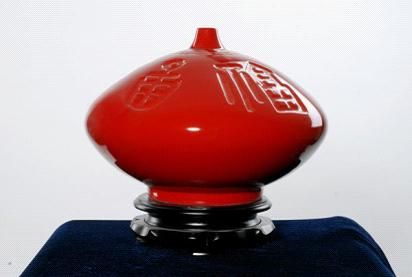 同時,在高溫紅釉瓷的基礎上,徐少東又創(chuàng)作出“富貴紅”漆線雕系列,薈萃了中國三大傳統(tǒng)工藝的特色,融德化陶瓷之古雅、福州脫胎漆器之神韻、北京景泰藍之華彩于一身,并吸取了閩南民間藝人雕琢修飾的傳統(tǒng)技法,將中國民俗藝術、宗教藝術以及宮廷藝術中的禮器、祭器、貢品兼收并蓄,鎦金飾銀,富麗堂皇,使富貴紅成為當代真正能夠代表中國瓷藝最高水準的藝術精品!