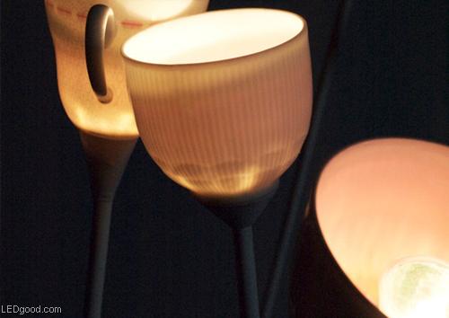 一直很想收集各種漂亮的杯子,玻璃杯,茶杯,酒杯。如果在杯中再加入一些光,那將會(huì)是什么樣子。LED燈光之家?guī)?lái)這款杯子燈Teelicht aka Tee Lights,由設(shè)計(jì)師Louisa Kber獨(dú)特設(shè)計(jì)。每一個(gè)茶杯都變成一個(gè)燈杯,充分展現(xiàn)陶瓷燈的透光效果,盛滿(mǎn)光的杯子,讓人更加有家的感覺(jué)。立在細(xì)細(xì)燈桿上也像特別的郁金香,盛開(kāi)在金色的光芒中。