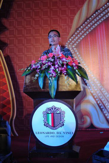 在觀賞《L&D陶瓷品牌形象片》后,嘉賓廣東家美陶瓷有限公司L&D事業(yè)部副總經(jīng)理、市場總監(jiān)許小勇先生和華耐·立家建材連鎖廣州總經(jīng)理錢友良先生上臺致辭。不約而同,兩位總經(jīng)理在致辭中都表達出對到場設(shè)計師的感謝之情。