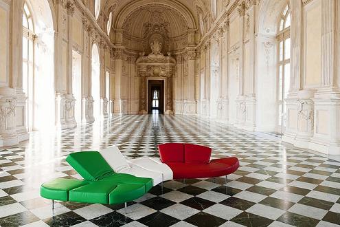 Edra的國旗沙發(fā)。今年,Edra為慶祝意大利統(tǒng)一150周年特地重新推出了這款與意大利 國旗同色的組合沙發(fā)。