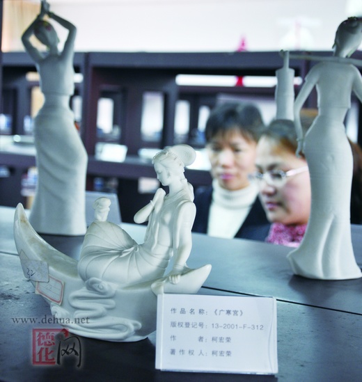 同樣因為樹大招風(fēng),德化縣德化宏益陶瓷研究所的柯宏榮、陳桂玉夫妻備受作品被人仿冒的困擾。2000年,為了參加上海舉辦的名瓷展,夫妻倆設(shè)計出一款精美的陶瓷藝術(shù)品《玉蘭仙子》,當(dāng)時每尊600多元的價格投放市場仍然供不應(yīng)求,但展會結(jié)束回到德化,他們發(fā)現(xiàn)仿制品已經(jīng)“遍地開花”了。大量的仿制品不僅沖擊市場,而且仿制品粗制濫造,也影響了大師的聲譽,但當(dāng)時對于作品被仿制,除了心痛和憤怒卻無無計可施,只好關(guān)閉展廳,謝絕參觀者,原本想出版的一本作品集也不敢出版了。
