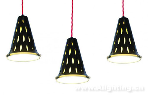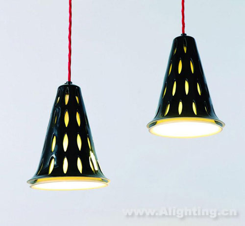 圖為英國(guó)設(shè)計(jì)師Corinna Warm 設(shè)計(jì)的雙層陶瓷吊燈Slip Lamps。燈罩采用發(fā)光骨瓷器,在燈罩中采用異形打孔穿透,營(yíng)造透光效果,歡迎欣賞學(xué)習(xí)~!