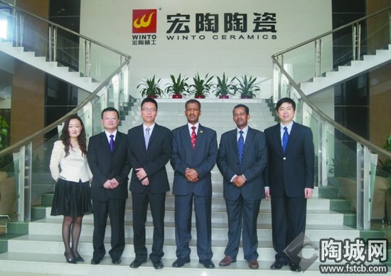 右圖為埃塞俄比亞駐廣州總領(lǐng)事紀(jì)麥克·紀(jì)特薩迪克(左四)、經(jīng)濟(jì)和商務(wù)領(lǐng)事萊格思·格日姆(左二)、省外經(jīng)貿(mào)廳合作處領(lǐng)導(dǎo)何定紅與宏陶公司出口部領(lǐng)導(dǎo)合影。
