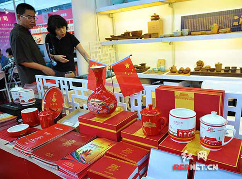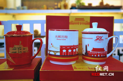 ( 由“湖湘名品工程”重點力推的三大瓷器之一的建黨獻(xiàn)禮瓷。)