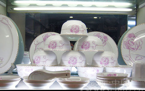 相比一般的陶瓷,獨(dú)特的燒制過程和骨碳的含量使得骨瓷餐具顯得更潔白、細(xì)膩、通透、輕巧。筆者發(fā)現(xiàn)一套“46頭骨瓷中餐具”,色澤呈現(xiàn)柔和的自然奶白色、質(zhì)地輕巧、細(xì)密堅(jiān)硬,據(jù)說是普通日用瓷器的兩倍的韌度,區(qū)別于普通的青花骨瓷餐具且有良好的保溫性。據(jù)銷售經(jīng)理介紹,骨瓷始創(chuàng)于英國,并以其高雅華貴成為歐洲各皇室及貴族的專用瓷。選用它是大多數(shù)人的首先,放在家中,無論從實(shí)用和美觀上都是中享受,但缺點(diǎn)是它的保養(yǎng)嬌貴些,微波爐、洗碗機(jī)都是不建議使用的,不過放進(jìn)消毒柜去消毒是沒有問題。