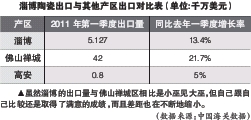 近日,筆者從淄博海關(guān)了解到,今年該市首季陶瓷產(chǎn)品出口創(chuàng)匯5127萬(wàn)美元,創(chuàng)造了歷史新高,同比增長(zhǎng)13.4%,達(dá)近年同期最高值。