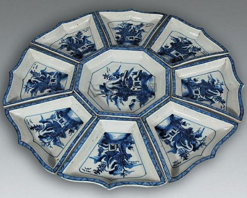 攢盤:始于明代萬(wàn)歷年問,延續(xù)至清末的成套餐具。以分割成數(shù)件的盤或碗相攢組合為一個(gè)整體,故稱作“攢盤”或“攢碗”,又稱“全盤”、“全碗”,用以盛裝不同的小菜或果點(diǎn)。按其件數(shù)區(qū)別,又稱為“五子”、“七巧”、“八仙”、“九子”、“十成”。外部多以各種質(zhì)地的套盒相盛。