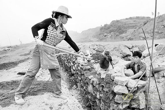 7月21日,在宜賓珙縣巡場鎮(zhèn)余箐工業(yè)園區(qū),幾名建設(shè)工人們正在歐冠陶瓷工地砌堡坎。珙縣引進的歐冠陶瓷企業(yè)總投資6個億左右,目前已有兩條生產(chǎn)線的廠房開始建設(shè)。