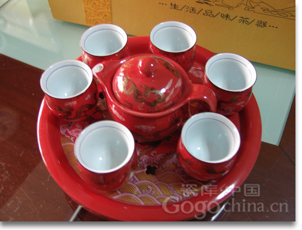 圖:德化紅金龍雙層綠茶茶具套裝
