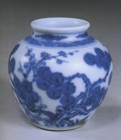 此罐高6.4cm,小巧精致,釉色白中泛亮。小小的罐腹上用青花繪出“歲寒三友圖”,紋飾纖柔精細(xì),風(fēng)格俊雅秀麗。圈足內(nèi)有“大清雍正年制”雙圈青花楷書款。