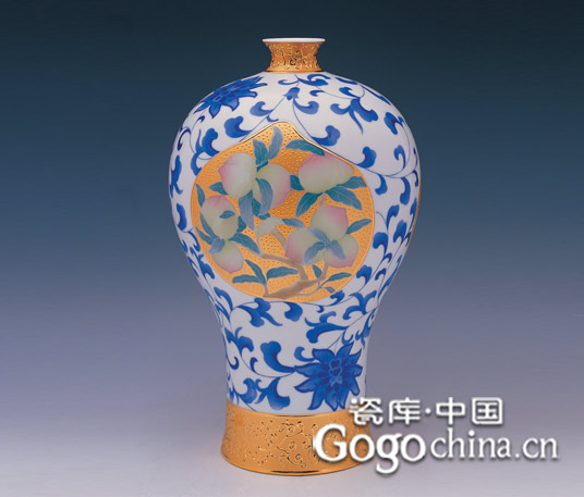 圖1:金鑲玉壽桃陶瓷藝術(shù)花瓶