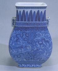 穿帶瓶是清代較流行的瓷器樣式,方形,貫耳,白地青花。該瓶高25.2cm,口徑11cm,器身滿(mǎn)飾海水紋,在波浪滔滔的海水中,葫蘆、扇子、長(zhǎng)笛、寶劍、玉板、荷花、花籃、魚(yú)鼓漂流起伏,借物喻人,描寫(xiě)八仙過(guò)海的傳說(shuō)。瓷器釉面光潤(rùn)明亮,形體豐滿(mǎn)端正。